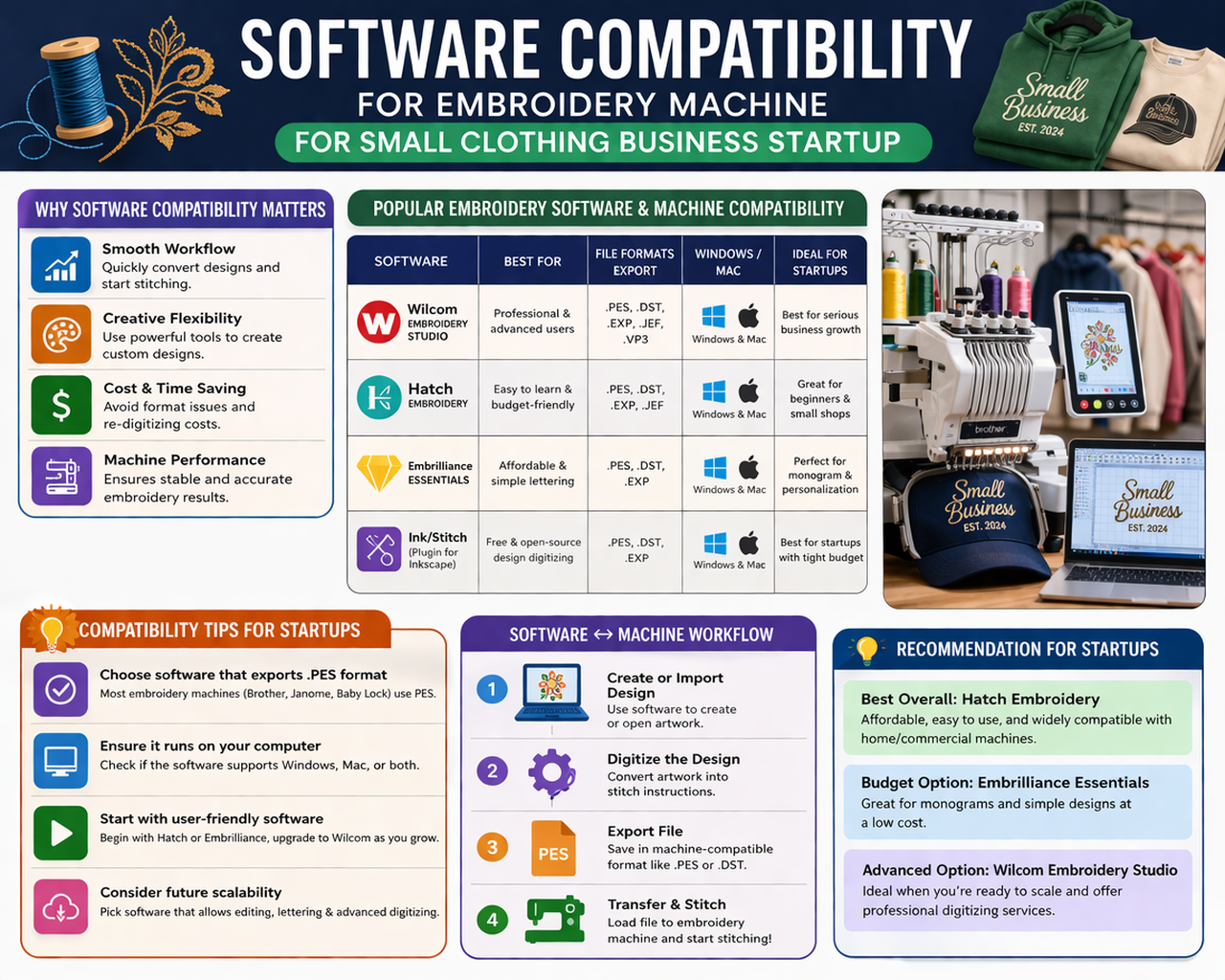 Software Compatibility for Embroidery Machine for Small Clothing Business Startup