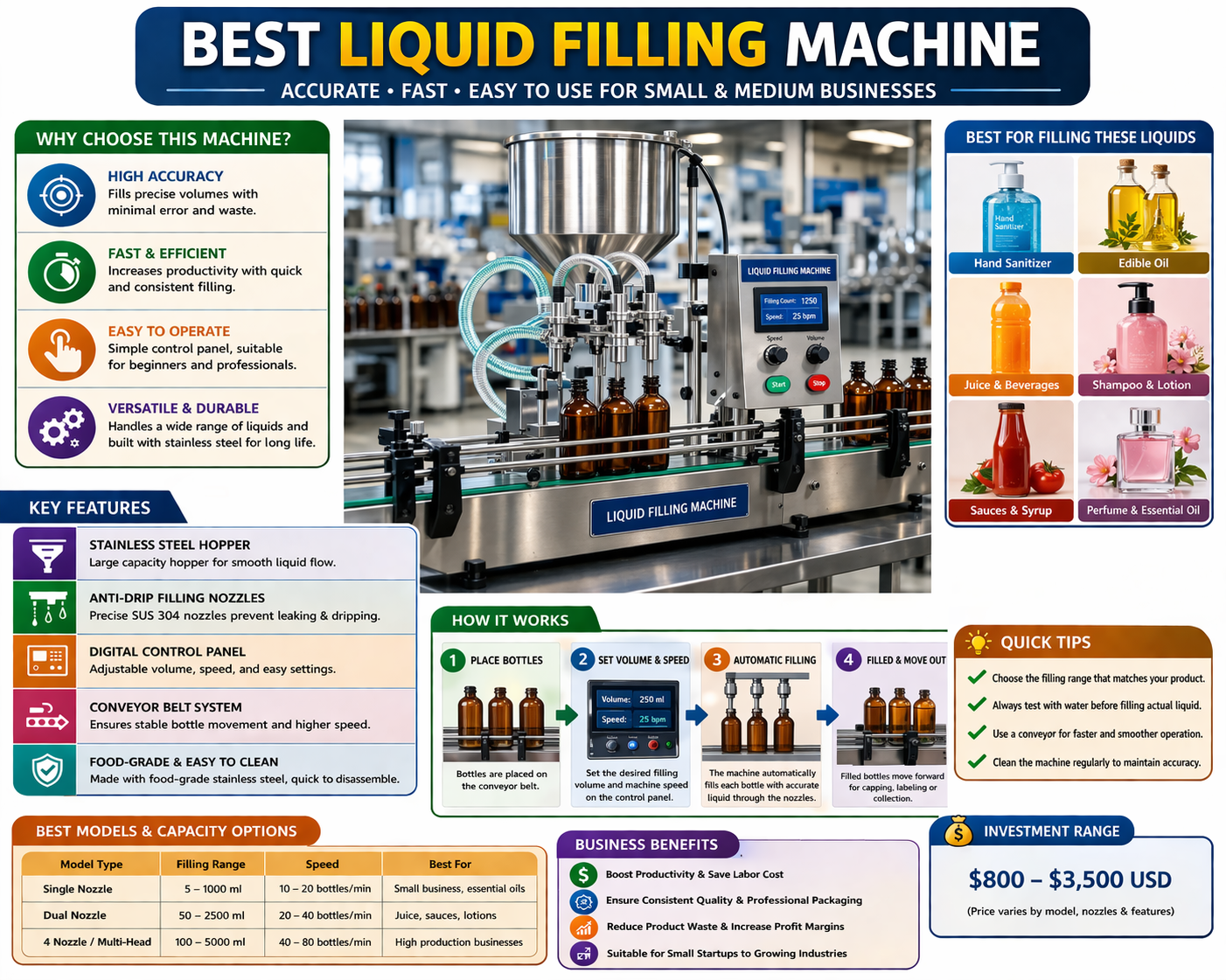 Manual filling is slow, messy, and inconsistent. If you want to grow faster, investing in the best liquid filling machine for small food business is essential.